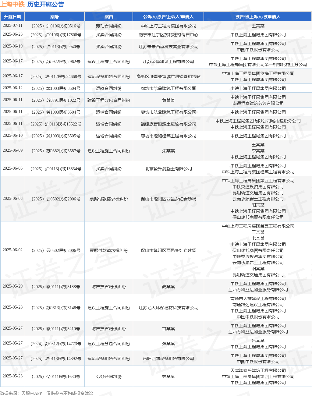 本站消息,根据天眼查APP显示,近日公布了一则中铁上海工程局集团有限公司作为被告/被上诉人的开庭公告,详细内容如下: